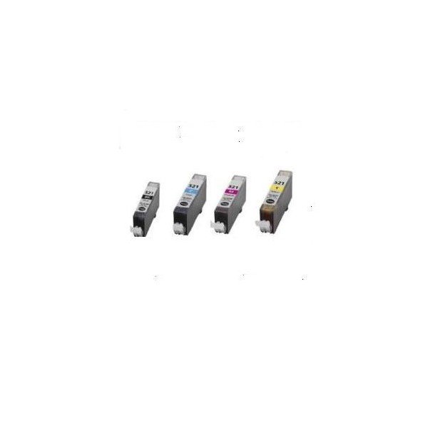CLI-521 XL Canon Pack (4) Black + Cyan + Yellow + Magenta